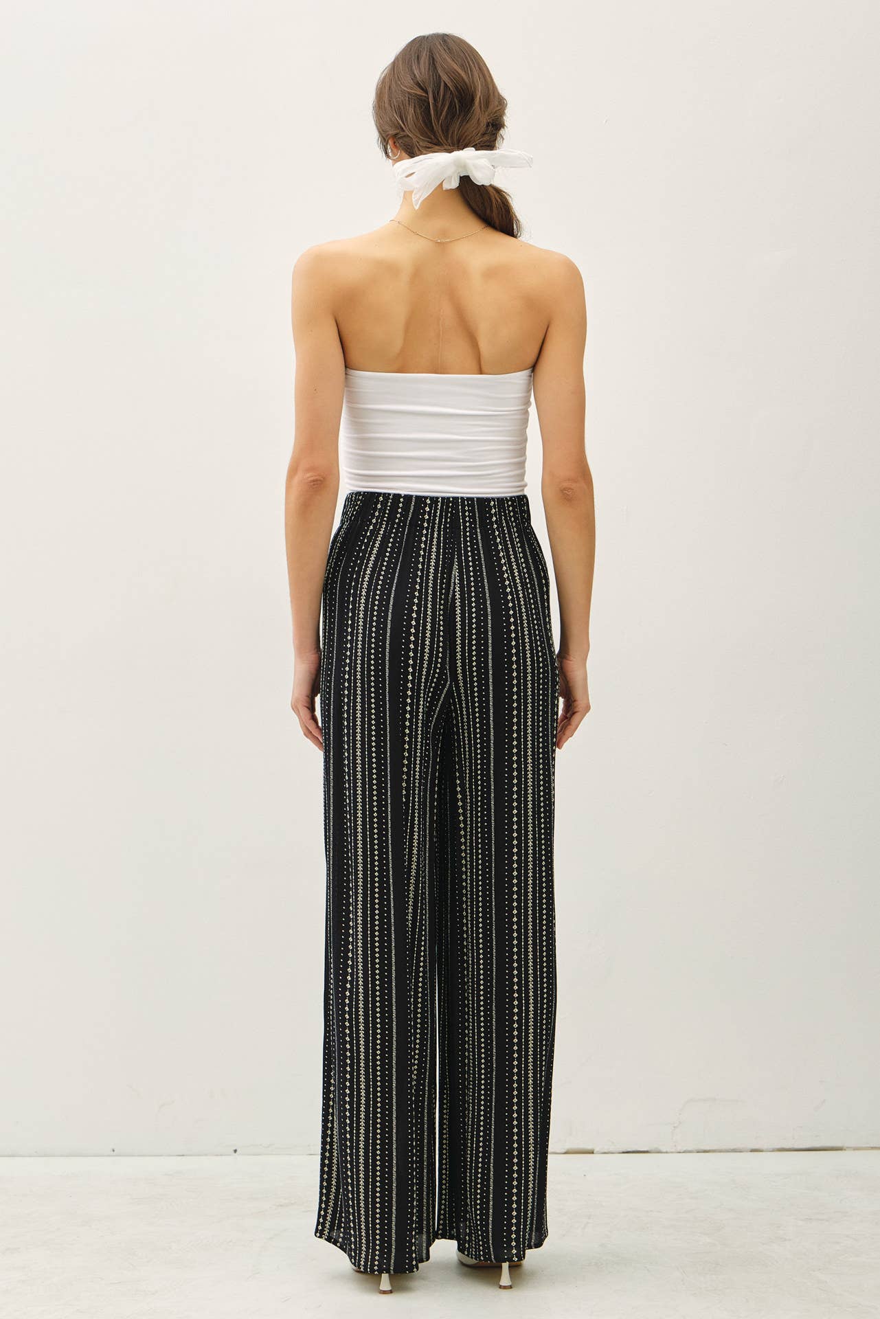 The star of the show? That rich black base kissed with delicate stripes and tiny diamond-like dots — subtle enough for daytime, seductive enough for cocktails under the stars. Relaxed fit + breezy fabric = pure comfort, but make it chic. Slip them on with a silky cami and strappy heels for date-night glow, or throw on a cropped tee and sandals for that “I just woke up this effortlessly cool” energy.