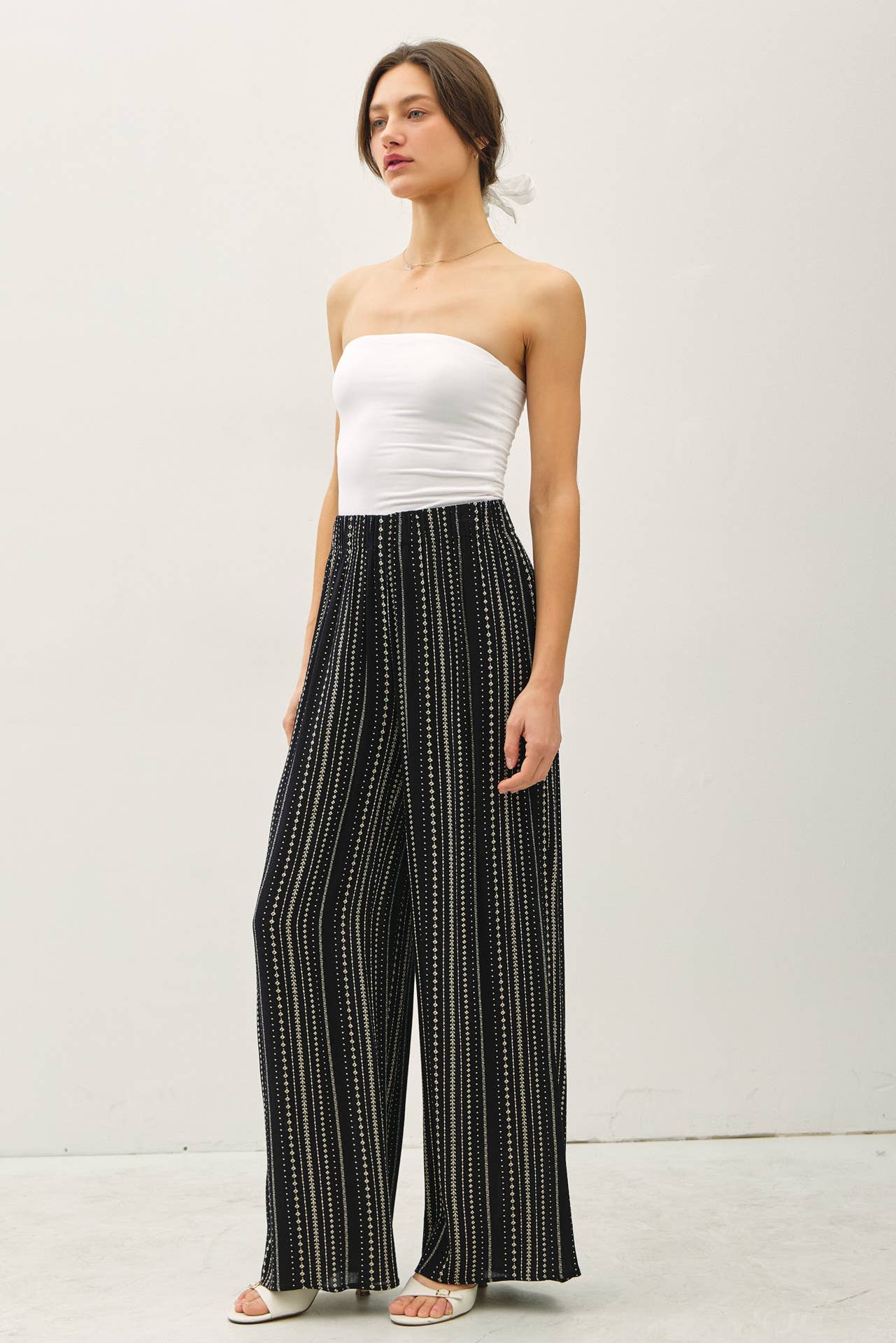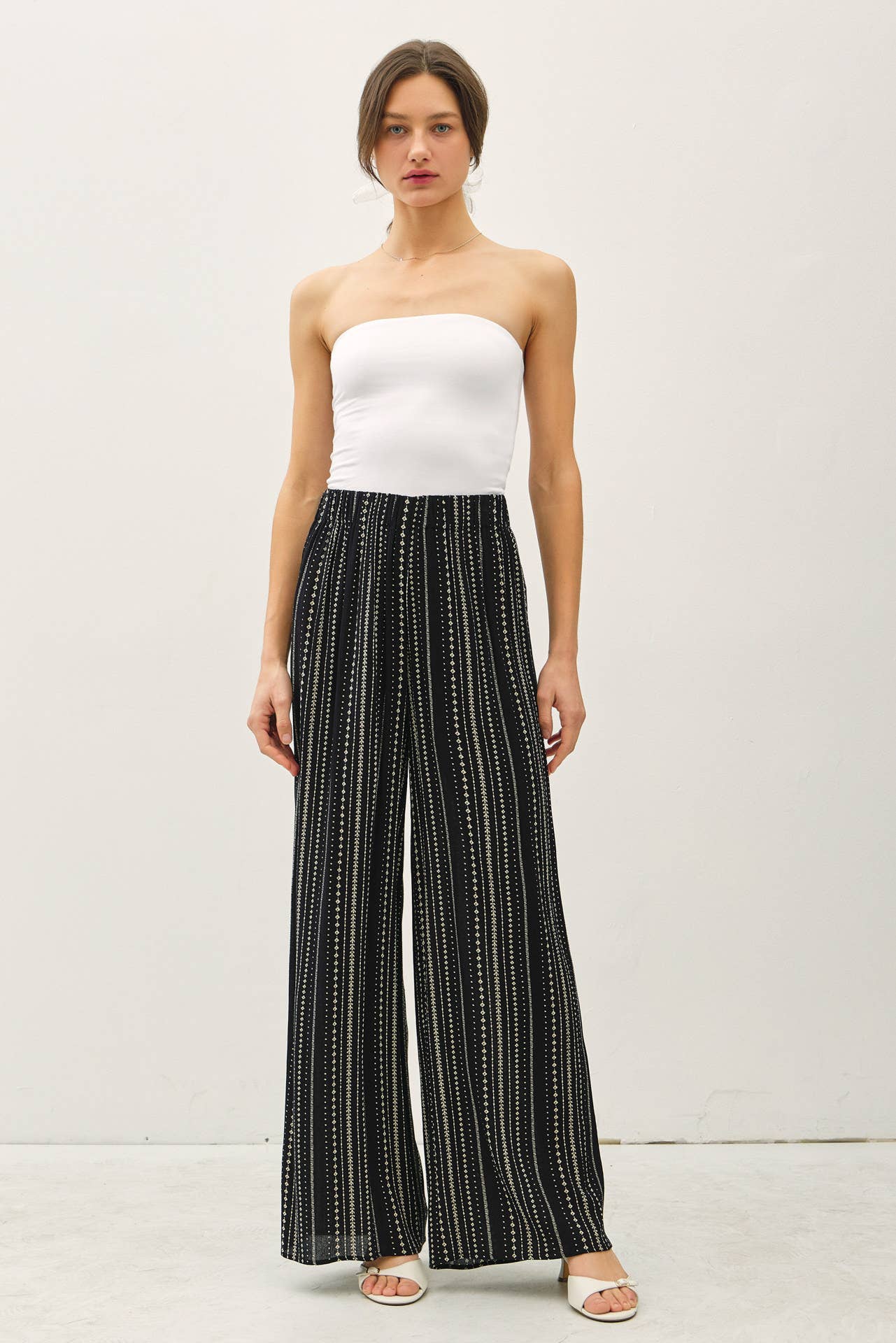 These dreamy pull-on wonders glide on like a second skin thanks to the soft elastic waistband that cinches just right (no fuss, all comfort). The wide-leg silhouette flows with every step, creating that long, leg-elongating palazzo magic that makes you feel instantly taller, lighter, and a little more glamorous.
